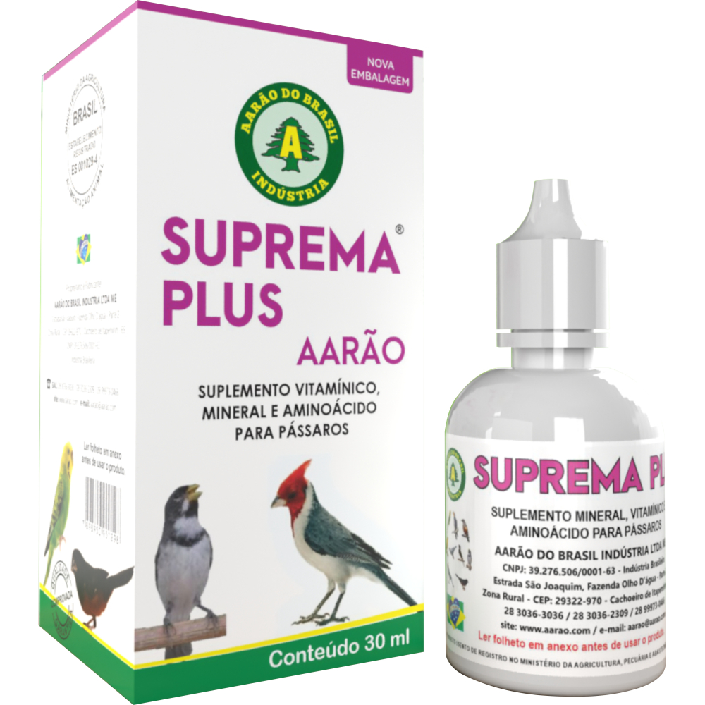 O Suprema Plus® – Aarão é um polivitamínico, associado a aminoácidos e eletrólitos em concentrações equilibradas, indicado para pássaros e aves de todas as idades, na reposição de eletrólitos perdidos, reestabelecendo o equilíbrio hidroeletrolítico do pássaro, e no desconforto causado pelo calor excessivo, melhorando sua qualidade nutricional.