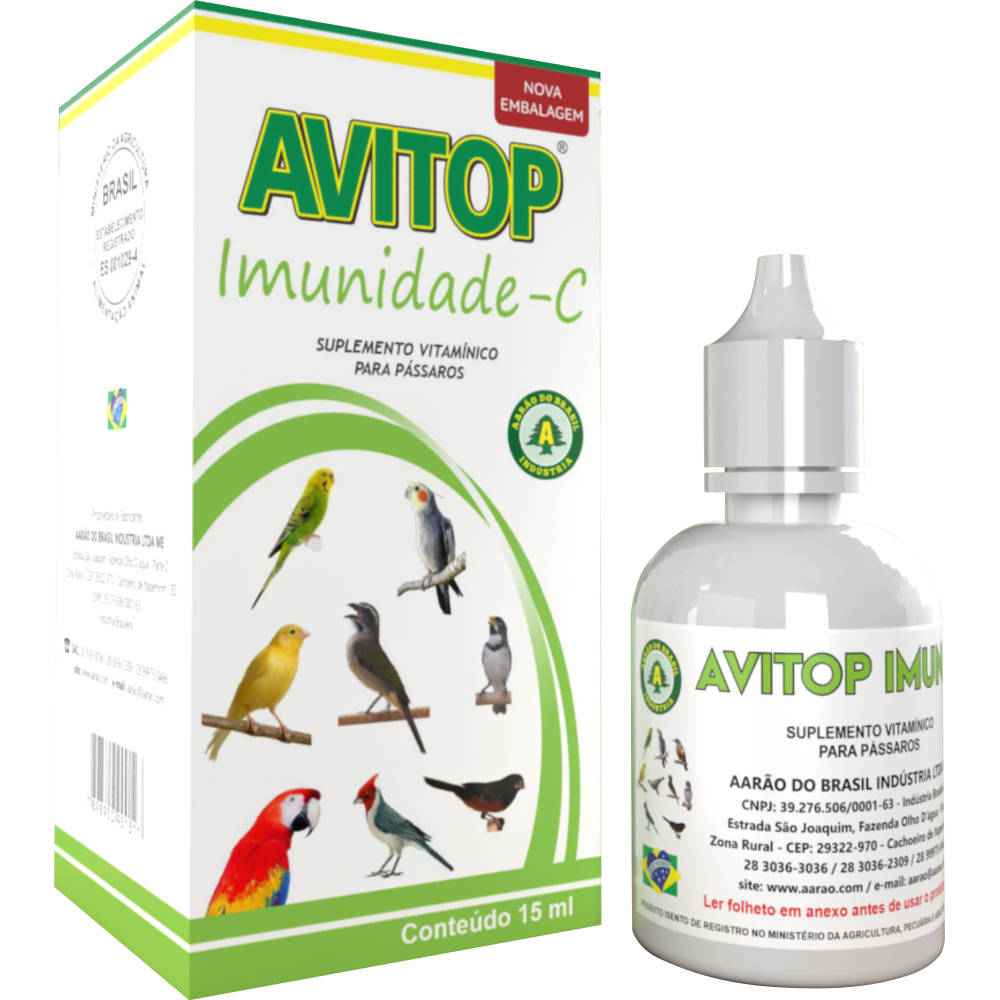 Avitop Imunidade-C® - Aarão é indicado para melhorar o metabolismo das aves, aumentando sua imunidade em todas as fases da vida, podendo ser usado em pássaros e aves de todas as idades.